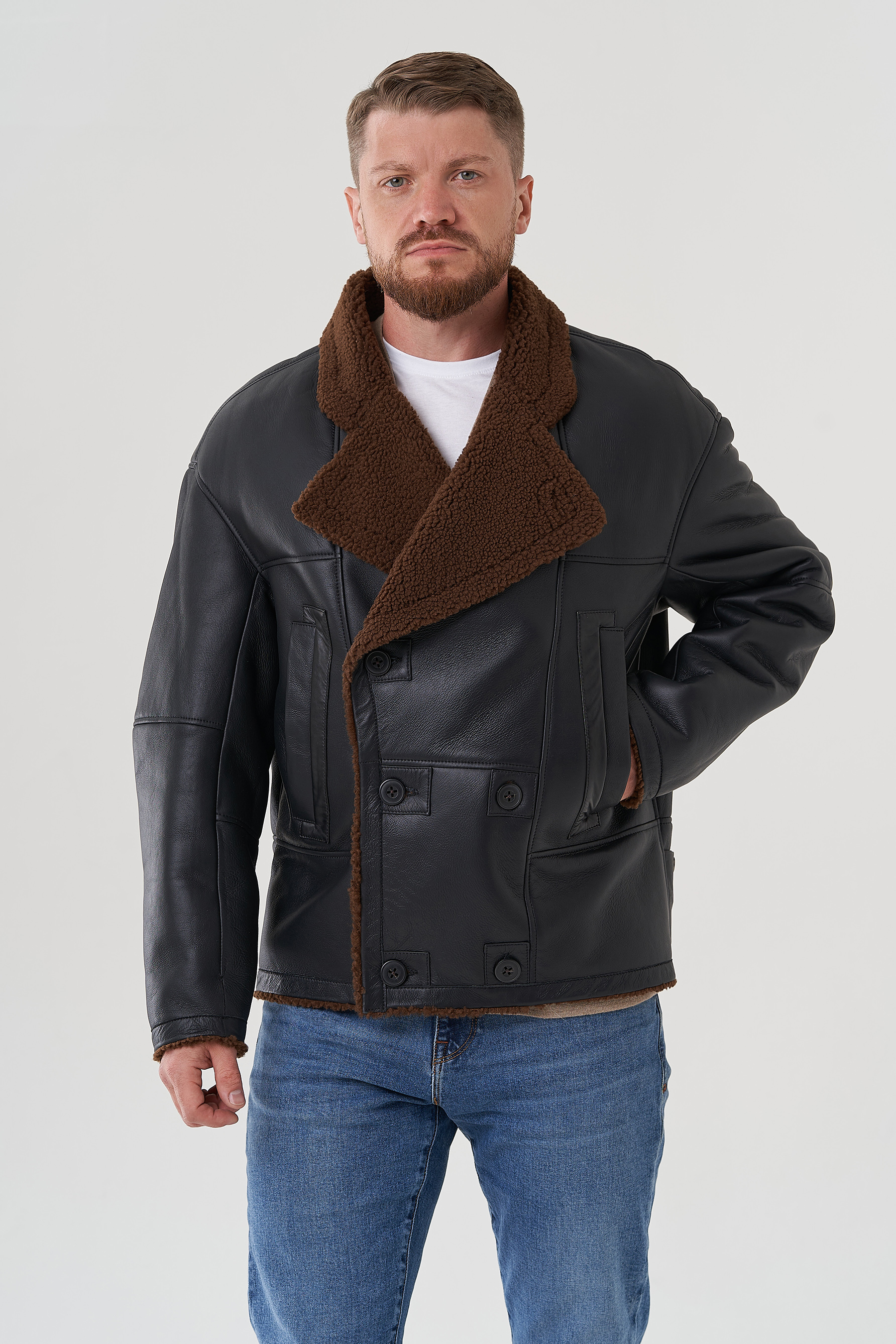 Тип ворота - английский воротник , отделка овчина мерино, цвет - коричневый
