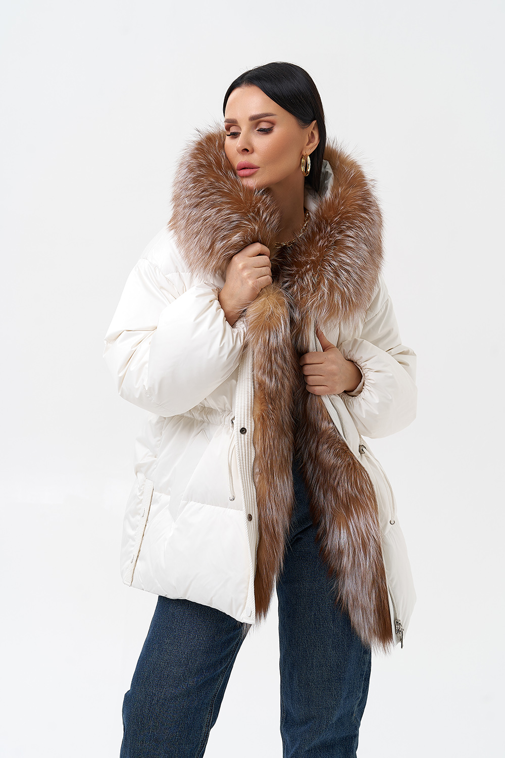 Крой воротника - капюшон, отделка лиса