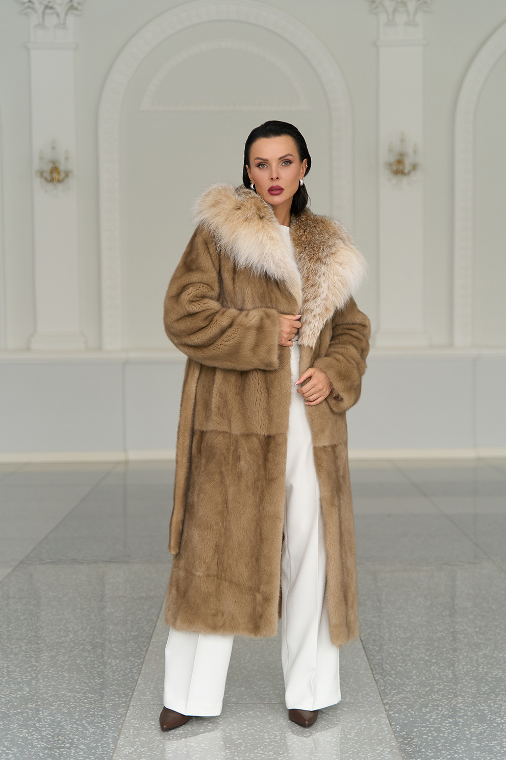 Для жителей Норильска у нас действует беспроцентная рассрочка и кредит на выбранный товар — Женская шуба из меха норки с капюшоном из меха рыси артикул norilsk29531. Если у вас остались вопросы напишите или позвоните нам, и мы на них ответим.